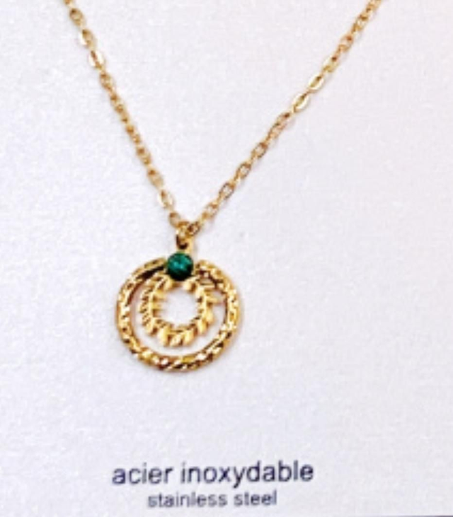 Apportez une touche d’élégance à votre tenue avec ce collier au pendentif fin et délicat. Son design intemporel, sublimé par une pierre verte discrète, en fait un bijou facile à porter au quotidien comme pour les grandes occasions.