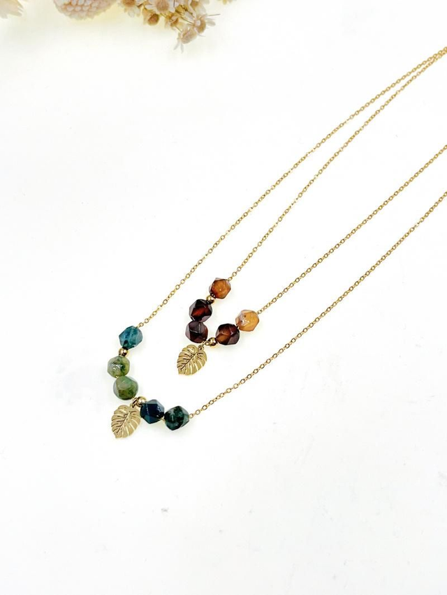 Collier pierre verte et cœur en acier inoxydable